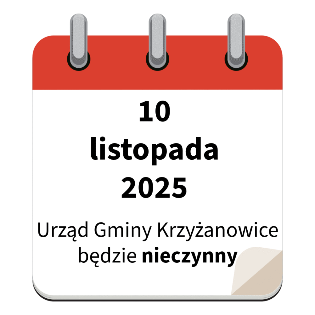 Uprzejmie informujemy, że 10 listopada 2025 r. Urząd Gminy Krzyżanowice będzie nieczynny