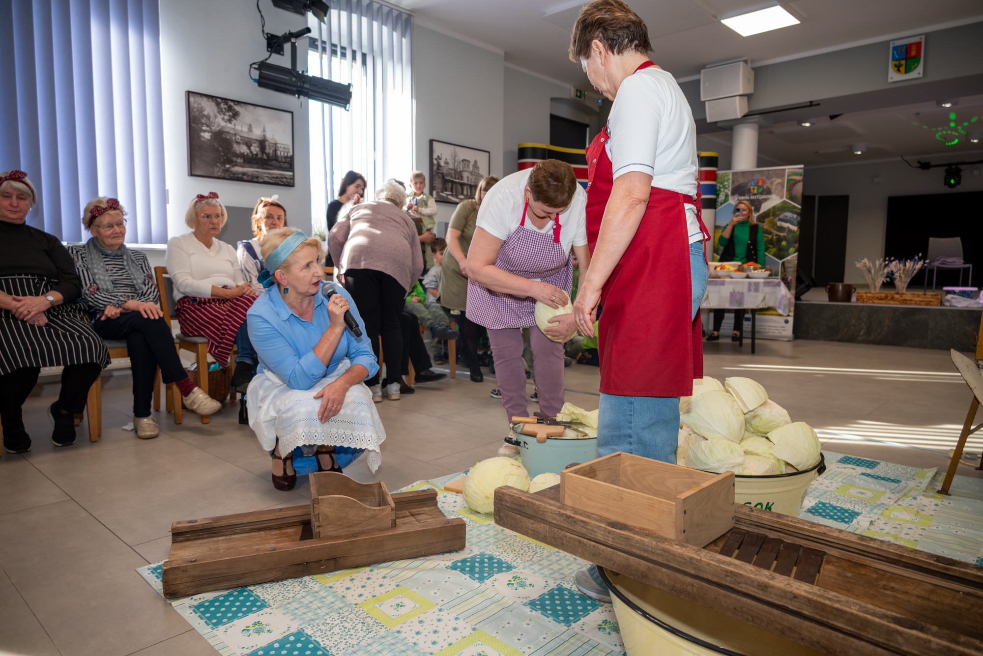 Spotkanie rozpoczęło się poczęstunkiem przy kawie i domowych wypiekach, a zakończyło degustacją aromatycznego bigosu z kapusty kiszonej według tradycyjnej receptury. Jak co roku nie zabrakło pań z Kół Gospodyń Wiejskich z terenu gminy Krzyżanowice, które z uśmiechem prezentowały dawny sposób kiszenia kapusty – od szatkowania po ubijanie jej w beczce.