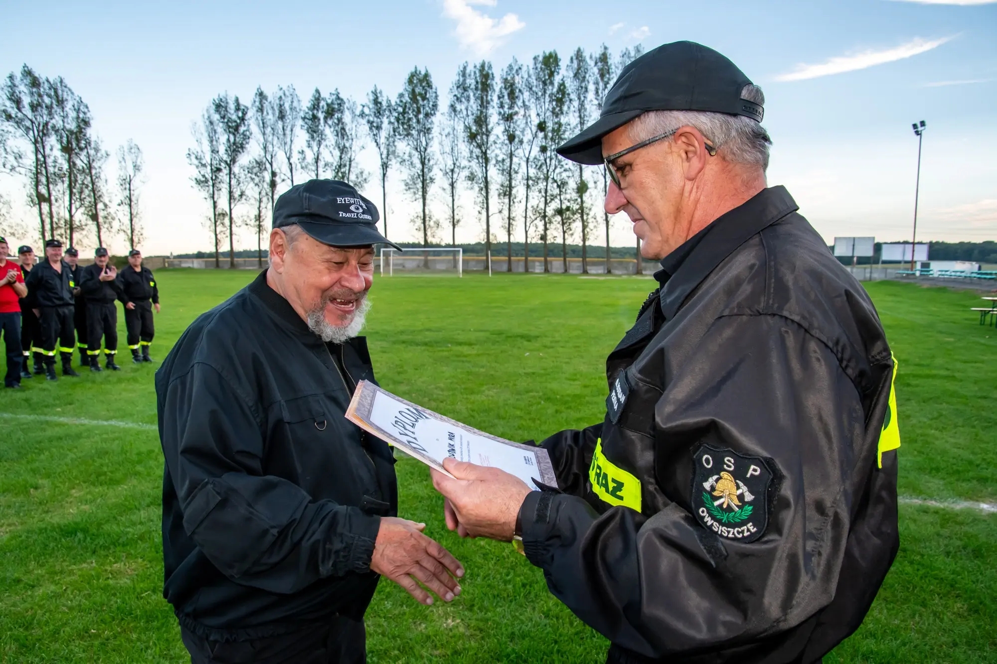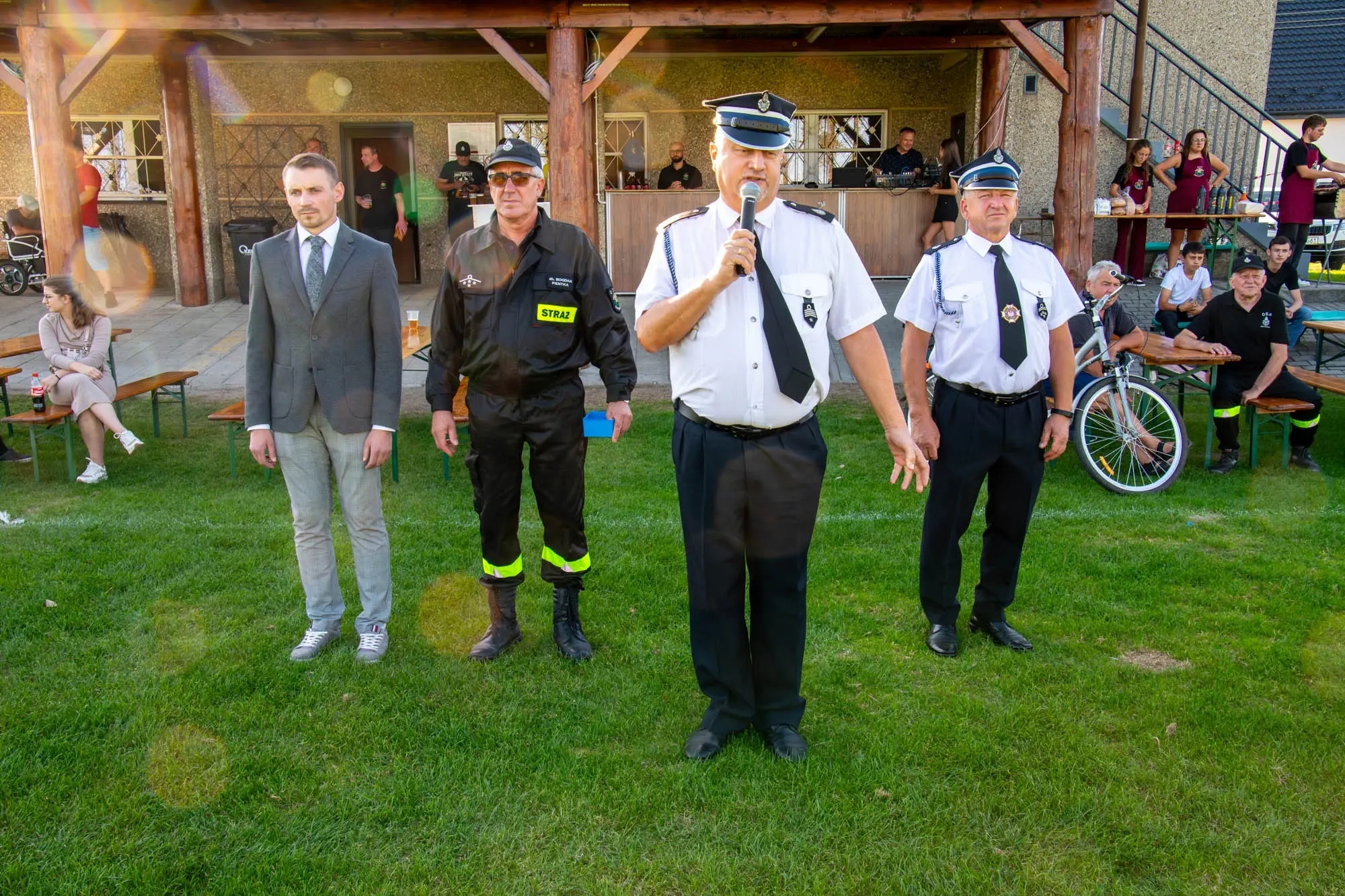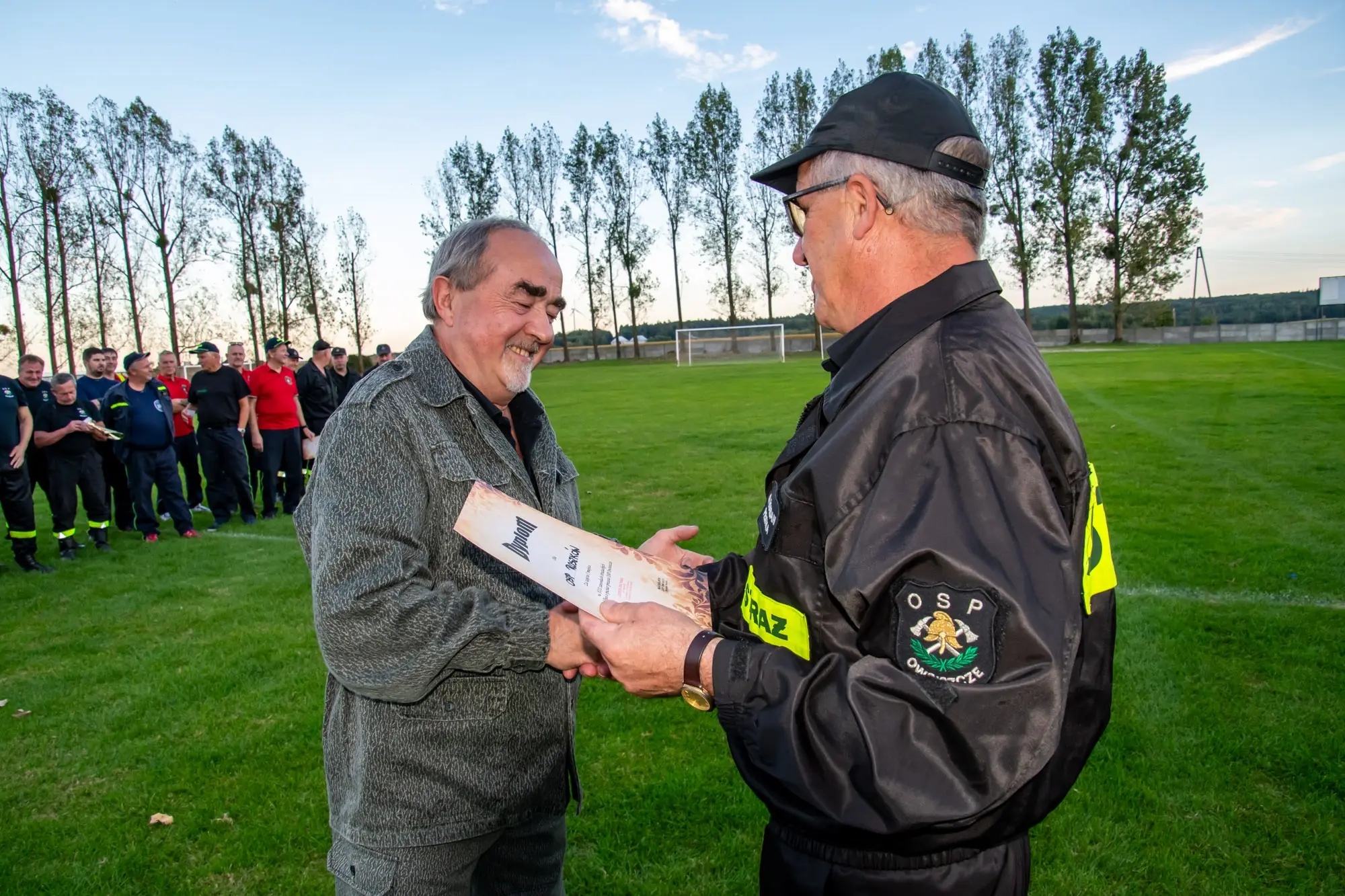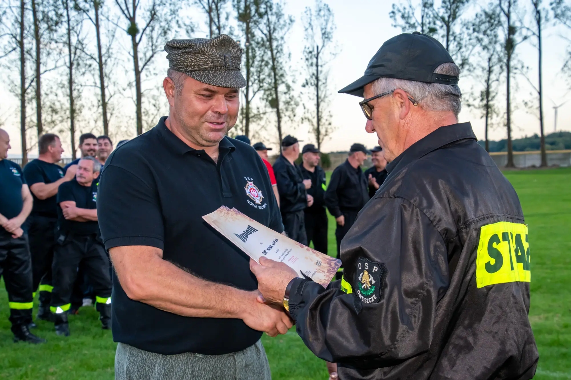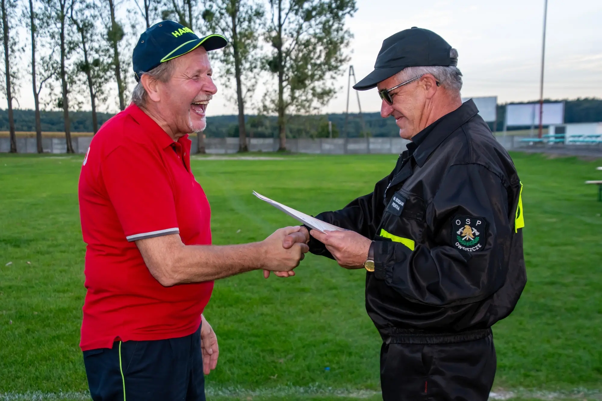 Powrót do listy wiadomości Opublikowano: 22.09.2025 Zawody Oldboyów OSP w Owsiszczach 20 września na boisku w Owsiszczach odbyły się zawody oldboyów Ochotniczych Straży Pożarnych, integrujące środowisko druhów-seniorów z gminy Krzyżanowice oraz czeskiego Píšťa. Do sportowej rywalizacji o puchar Prezesa OSP w Owsiszczach przystąpiło osiem siedmioosobowych drużyn. Uwagę zwracał imponujący średni wiek zespołów – 376 lat! Ćwiczenie bojowe polegało na sprawnym pokonaniu dystansu, zbudowaniu linii ssawnej i głównej, przygotowaniu linii gaśniczych, uruchomieniu motopompy oraz skutecznym ugaszeniu celu wodą. Uroczystego otwarcia zawodów dokonali prezes OSP Owsiszcze Bogdan Pientka, prezes zarządu gminnego OSP Walter Bożek, komendant gminny Krystian Jobczyk oraz inspektor do spraw obronnych, obrony cywilnej i sytuacji kryzysowych Urzędu Gminy Krzyżanowice, Martin Wojtek, reprezentujący wójta Grzegorza Utrackiego. Najstarszym zawodnikiem wydarzenia był druh Ludwik Mira z OSP Rudyszwałd (77 lat). Najstarsza wiekowo drużyna – również z Rudyszwałdu – osiągnęła sumaryczny wiek 430 lat. W rywalizacji najlepsza okazała się drużyna OSP Roszków, która uzyskała czas 31,94 sekundy (łączny wiek zawodników: 393 lata, najstarszy – 71 lat). Drugie miejsce zajął zespół z OSP Bolesław z wynikiem 33,19 sekundy (389 lat, najstarszy – 66 lat), a trzecie OSP Krzyżanowice (33,88 sekundy; 316 lat). Pełna klasyfikacja zawodów: OSP Roszków – 31,94 s (393 lata) OSP Bolesław – 33,19 s (389 lat) OSP Krzyżanowice – 33,88 s (316 lat) OSP Owsiszcze – 34,34 s OSP Zabełków – 38,39 s OSP Nowa Wioska – 38,42 s OSP Rudyszwałd – 41,05 s (najstarsza drużyna 430 lat) SDH Píšť – 42,78 s Zawody stanowiły nie tylko sportową rywalizację, ale były też okazją do spotkań, rozmów i wymiany doświadczeń. Dla wielu uczestników największą wartość miała możliwość ponownej integracji oraz podtrzymania strażackiej tradycji i przyjacielskich relacji. Galeria zdjęć (109) Zdjęcie 1 z 109