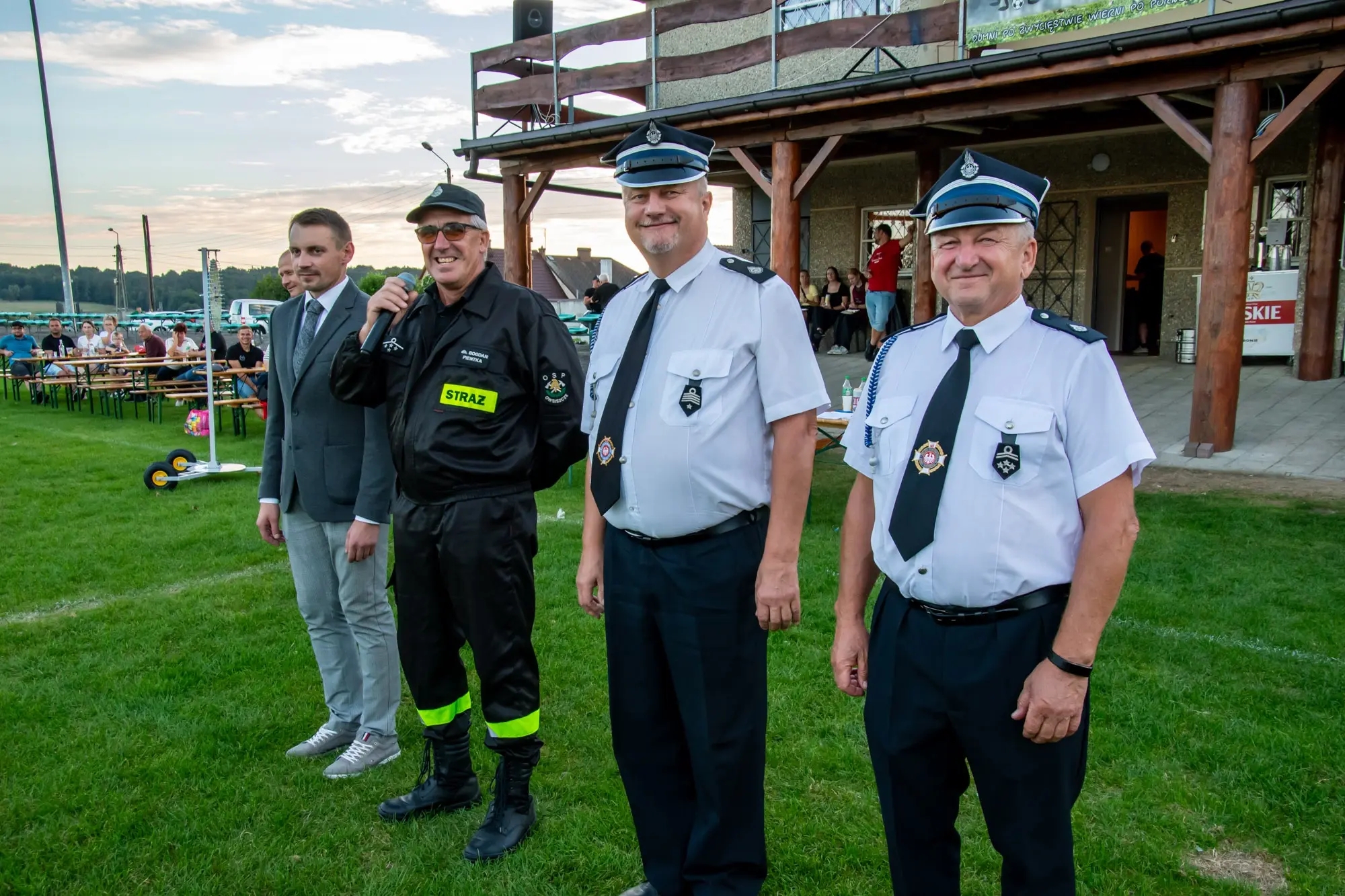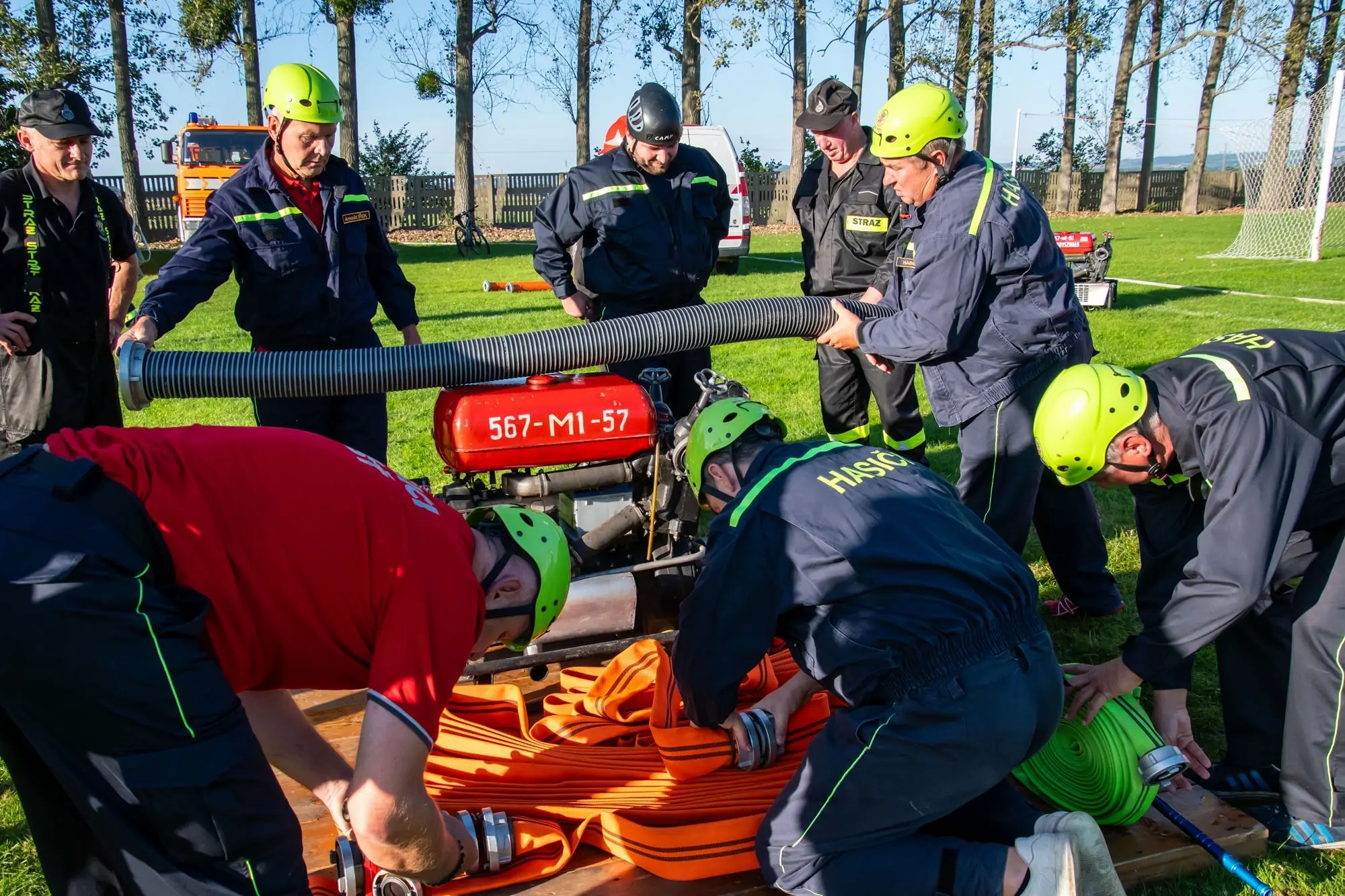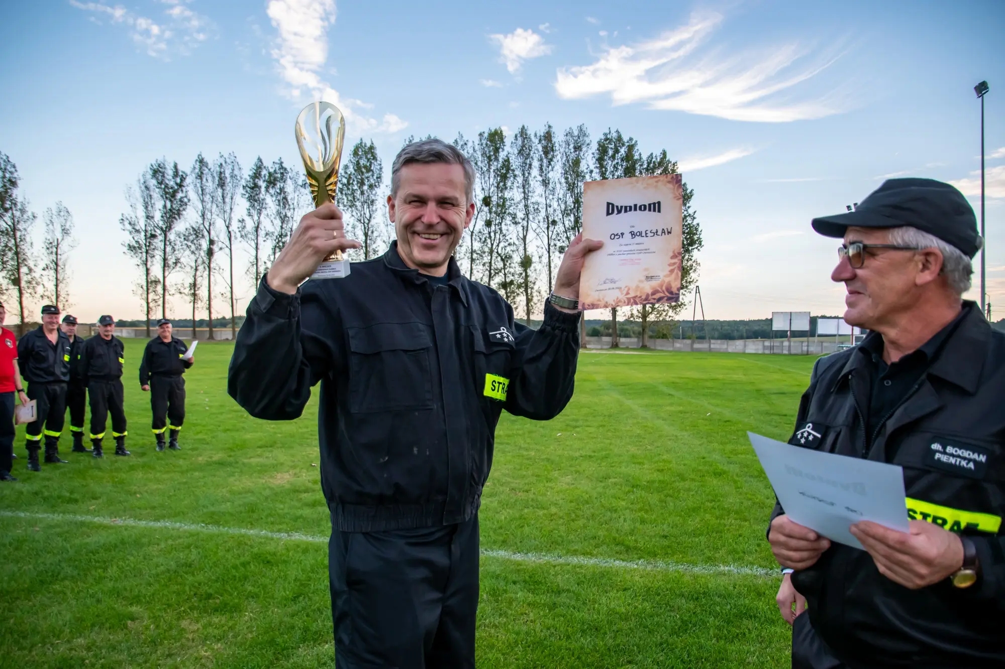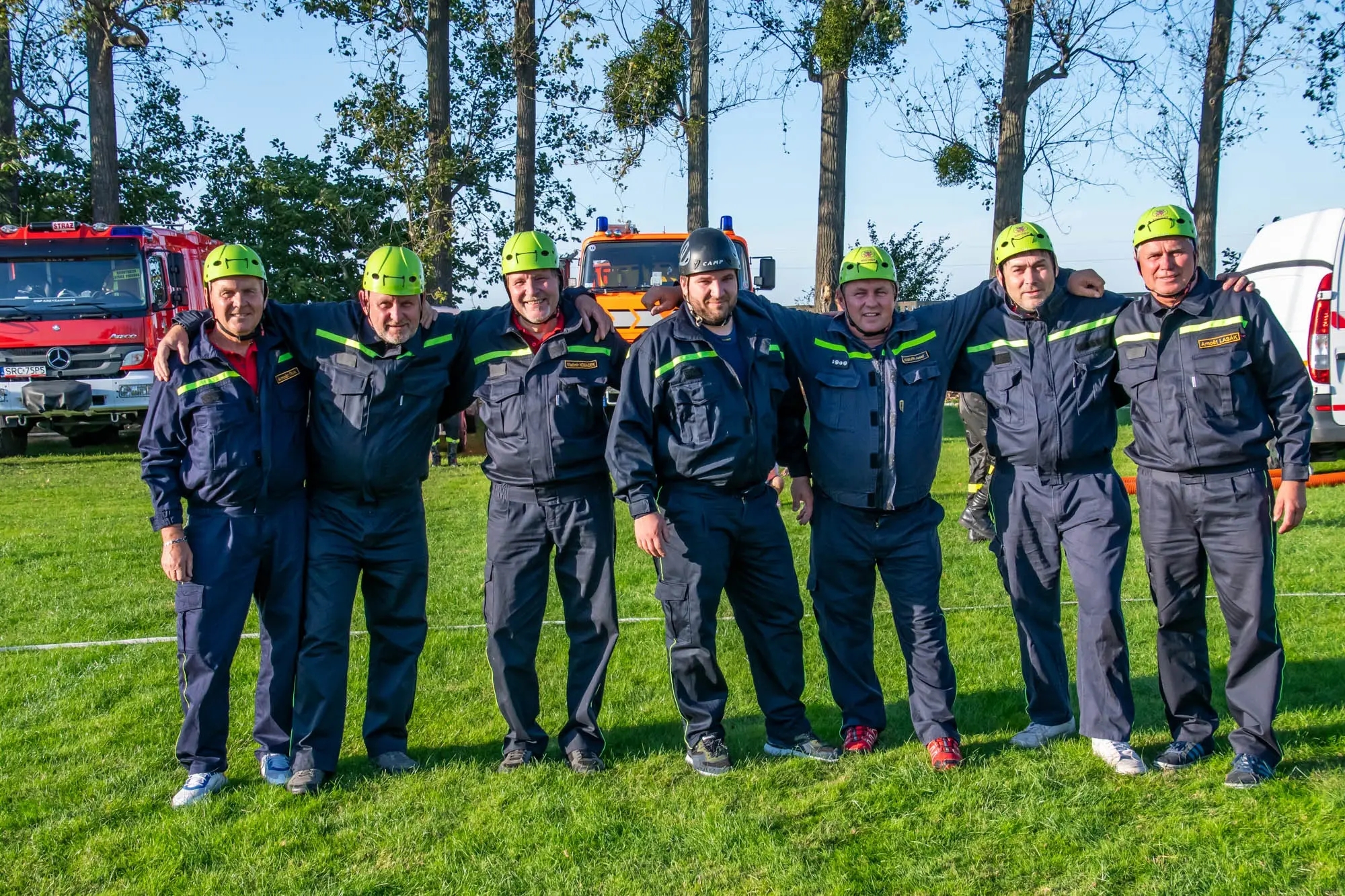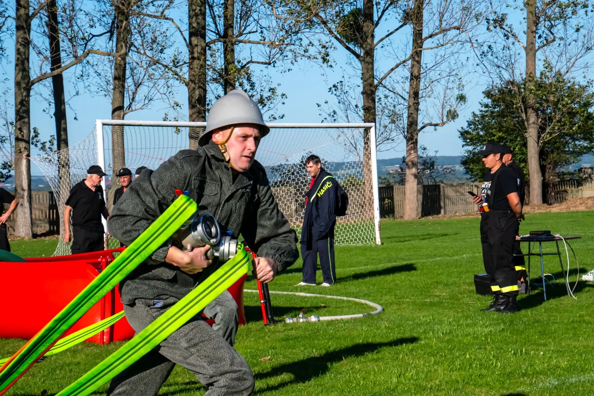 Powrót do listy wiadomości Opublikowano: 22.09.2025 Zawody Oldboyów OSP w Owsiszczach 20 września na boisku w Owsiszczach odbyły się zawody oldboyów Ochotniczych Straży Pożarnych, integrujące środowisko druhów-seniorów z gminy Krzyżanowice oraz czeskiego Píšťa. Do sportowej rywalizacji o puchar Prezesa OSP w Owsiszczach przystąpiło osiem siedmioosobowych drużyn. Uwagę zwracał imponujący średni wiek zespołów – 376 lat! Ćwiczenie bojowe polegało na sprawnym pokonaniu dystansu, zbudowaniu linii ssawnej i głównej, przygotowaniu linii gaśniczych, uruchomieniu motopompy oraz skutecznym ugaszeniu celu wodą. Uroczystego otwarcia zawodów dokonali prezes OSP Owsiszcze Bogdan Pientka, prezes zarządu gminnego OSP Walter Bożek, komendant gminny Krystian Jobczyk oraz inspektor do spraw obronnych, obrony cywilnej i sytuacji kryzysowych Urzędu Gminy Krzyżanowice, Martin Wojtek, reprezentujący wójta Grzegorza Utrackiego. Najstarszym zawodnikiem wydarzenia był druh Ludwik Mira z OSP Rudyszwałd (77 lat). Najstarsza wiekowo drużyna – również z Rudyszwałdu – osiągnęła sumaryczny wiek 430 lat. W rywalizacji najlepsza okazała się drużyna OSP Roszków, która uzyskała czas 31,94 sekundy (łączny wiek zawodników: 393 lata, najstarszy – 71 lat). Drugie miejsce zajął zespół z OSP Bolesław z wynikiem 33,19 sekundy (389 lat, najstarszy – 66 lat), a trzecie OSP Krzyżanowice (33,88 sekundy; 316 lat). Pełna klasyfikacja zawodów: OSP Roszków – 31,94 s (393 lata) OSP Bolesław – 33,19 s (389 lat) OSP Krzyżanowice – 33,88 s (316 lat) OSP Owsiszcze – 34,34 s OSP Zabełków – 38,39 s OSP Nowa Wioska – 38,42 s OSP Rudyszwałd – 41,05 s (najstarsza drużyna 430 lat) SDH Píšť – 42,78 s Zawody stanowiły nie tylko sportową rywalizację, ale były też okazją do spotkań, rozmów i wymiany doświadczeń. Dla wielu uczestników największą wartość miała możliwość ponownej integracji oraz podtrzymania strażackiej tradycji i przyjacielskich relacji. Galeria zdjęć (109) Zdjęcie 1 z 109