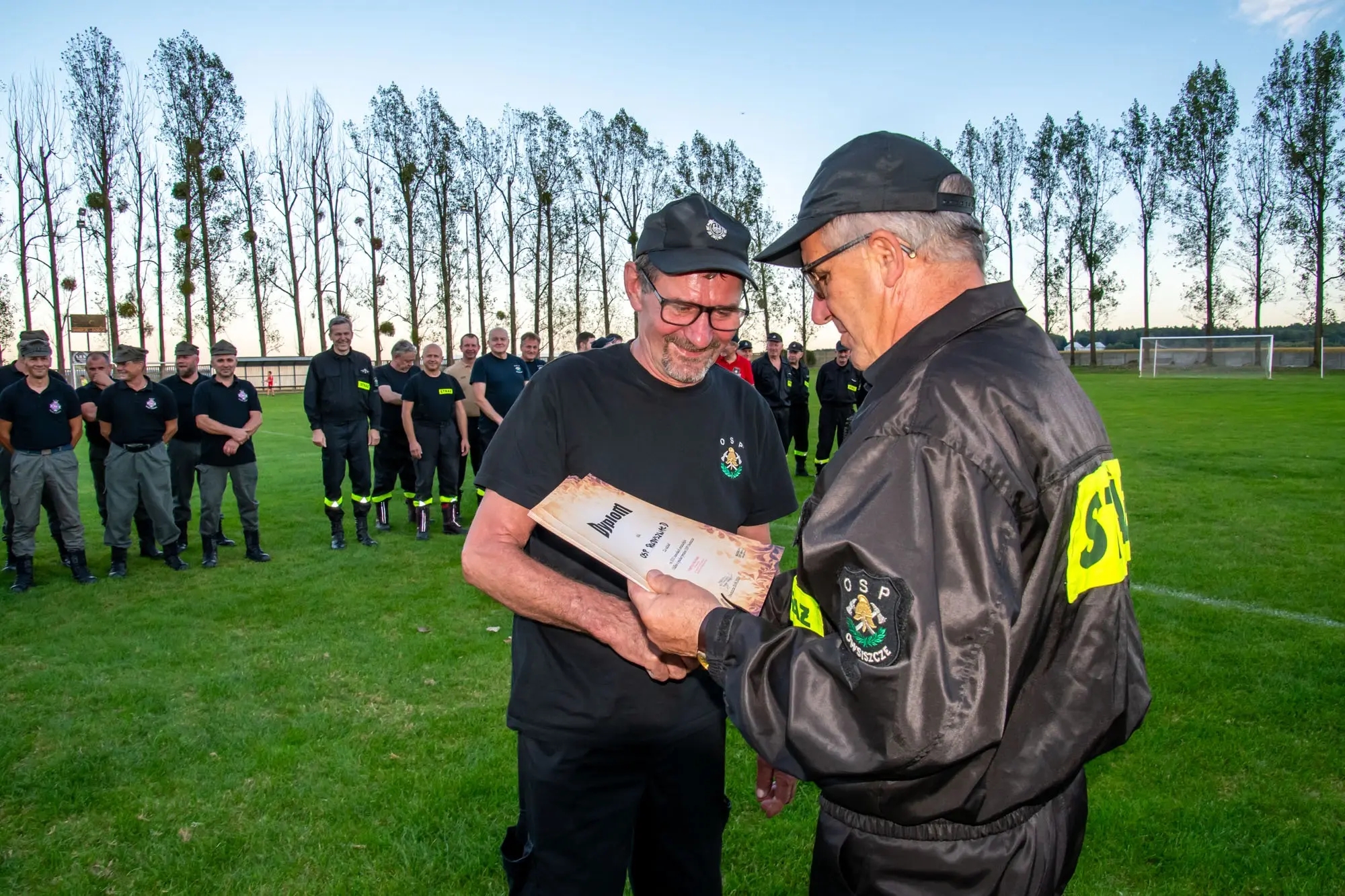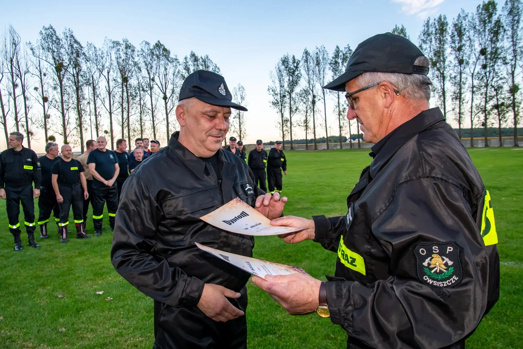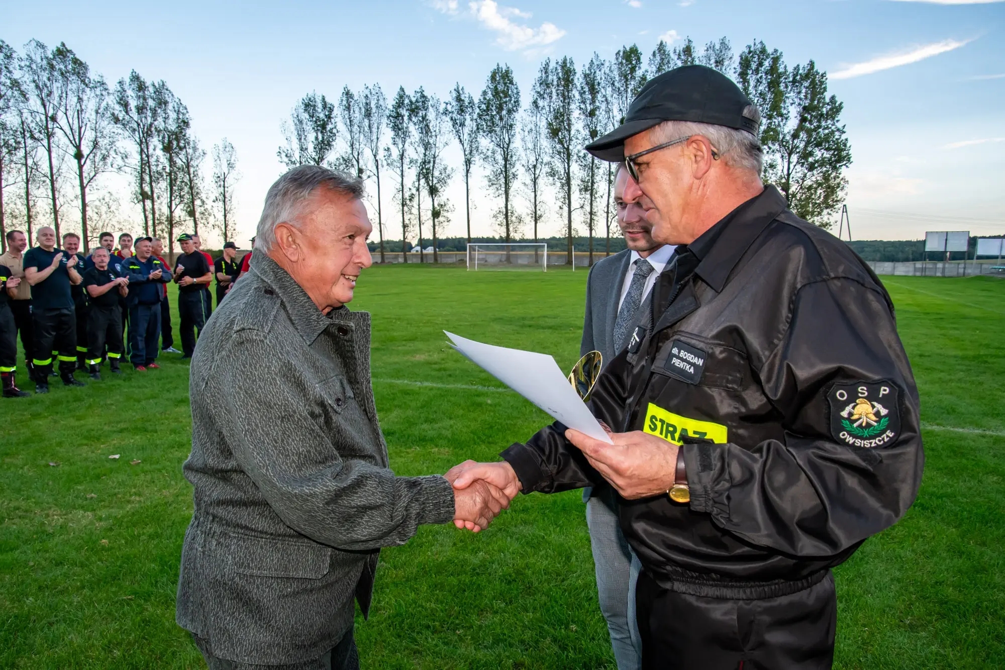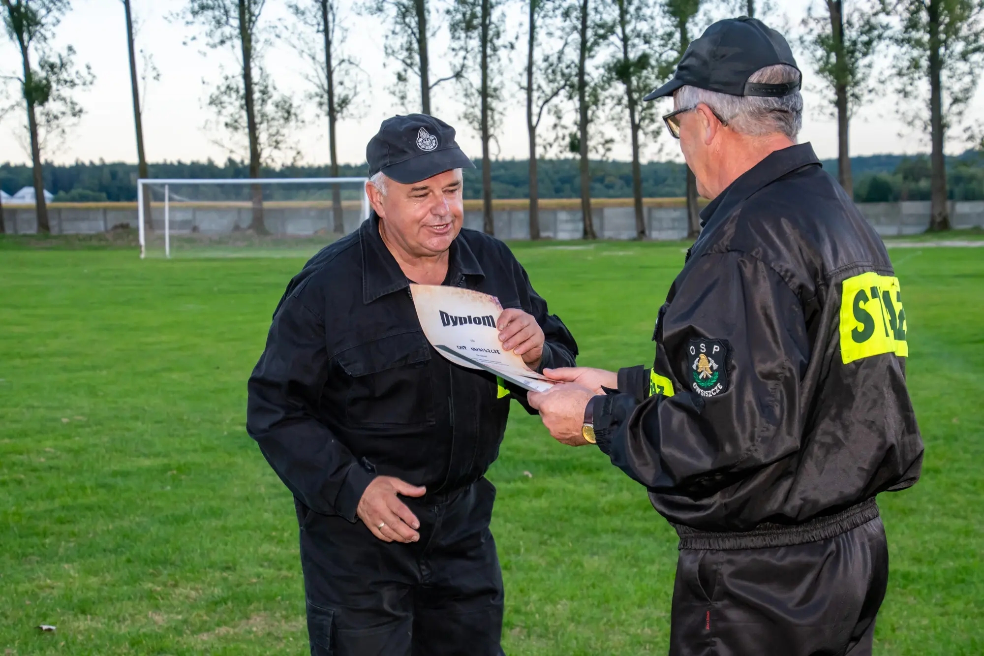 Powrót do listy wiadomości Opublikowano: 22.09.2025 Zawody Oldboyów OSP w Owsiszczach 20 września na boisku w Owsiszczach odbyły się zawody oldboyów Ochotniczych Straży Pożarnych, integrujące środowisko druhów-seniorów z gminy Krzyżanowice oraz czeskiego Píšťa. Do sportowej rywalizacji o puchar Prezesa OSP w Owsiszczach przystąpiło osiem siedmioosobowych drużyn. Uwagę zwracał imponujący średni wiek zespołów – 376 lat! Ćwiczenie bojowe polegało na sprawnym pokonaniu dystansu, zbudowaniu linii ssawnej i głównej, przygotowaniu linii gaśniczych, uruchomieniu motopompy oraz skutecznym ugaszeniu celu wodą. Uroczystego otwarcia zawodów dokonali prezes OSP Owsiszcze Bogdan Pientka, prezes zarządu gminnego OSP Walter Bożek, komendant gminny Krystian Jobczyk oraz inspektor do spraw obronnych, obrony cywilnej i sytuacji kryzysowych Urzędu Gminy Krzyżanowice, Martin Wojtek, reprezentujący wójta Grzegorza Utrackiego. Najstarszym zawodnikiem wydarzenia był druh Ludwik Mira z OSP Rudyszwałd (77 lat). Najstarsza wiekowo drużyna – również z Rudyszwałdu – osiągnęła sumaryczny wiek 430 lat. W rywalizacji najlepsza okazała się drużyna OSP Roszków, która uzyskała czas 31,94 sekundy (łączny wiek zawodników: 393 lata, najstarszy – 71 lat). Drugie miejsce zajął zespół z OSP Bolesław z wynikiem 33,19 sekundy (389 lat, najstarszy – 66 lat), a trzecie OSP Krzyżanowice (33,88 sekundy; 316 lat). Pełna klasyfikacja zawodów: OSP Roszków – 31,94 s (393 lata) OSP Bolesław – 33,19 s (389 lat) OSP Krzyżanowice – 33,88 s (316 lat) OSP Owsiszcze – 34,34 s OSP Zabełków – 38,39 s OSP Nowa Wioska – 38,42 s OSP Rudyszwałd – 41,05 s (najstarsza drużyna 430 lat) SDH Píšť – 42,78 s Zawody stanowiły nie tylko sportową rywalizację, ale były też okazją do spotkań, rozmów i wymiany doświadczeń. Dla wielu uczestników największą wartość miała możliwość ponownej integracji oraz podtrzymania strażackiej tradycji i przyjacielskich relacji. Galeria zdjęć (109) Zdjęcie 1 z 109