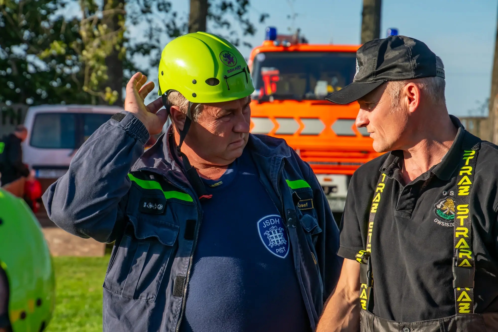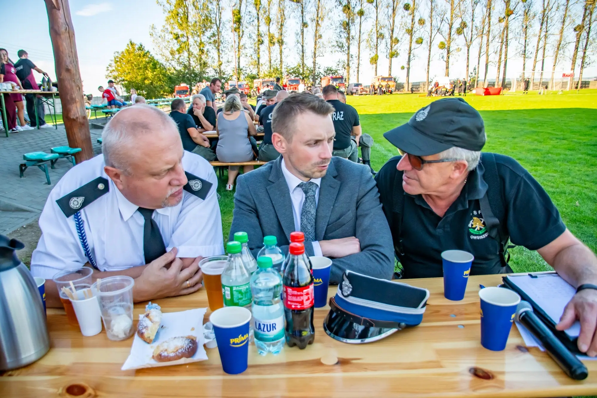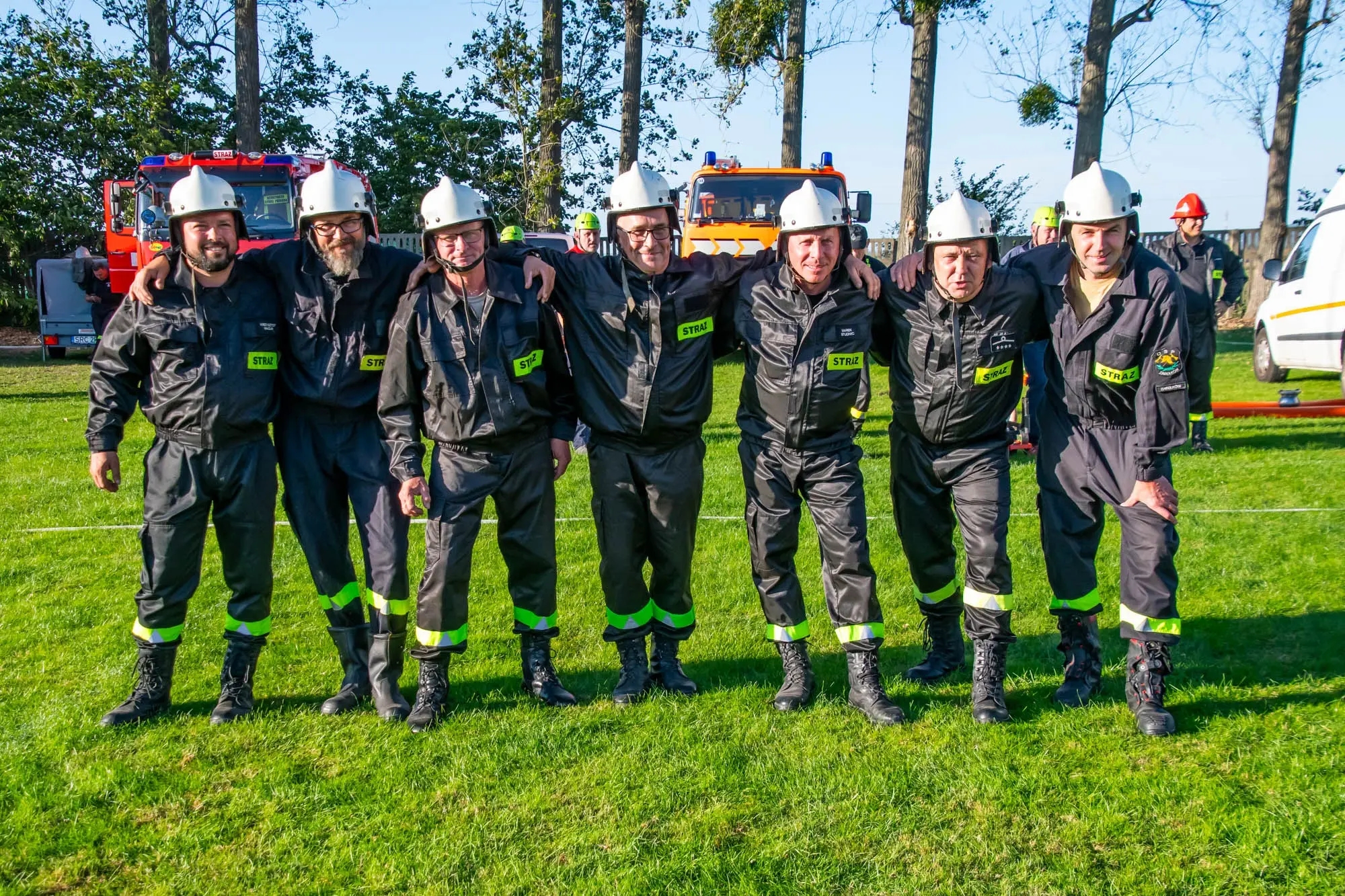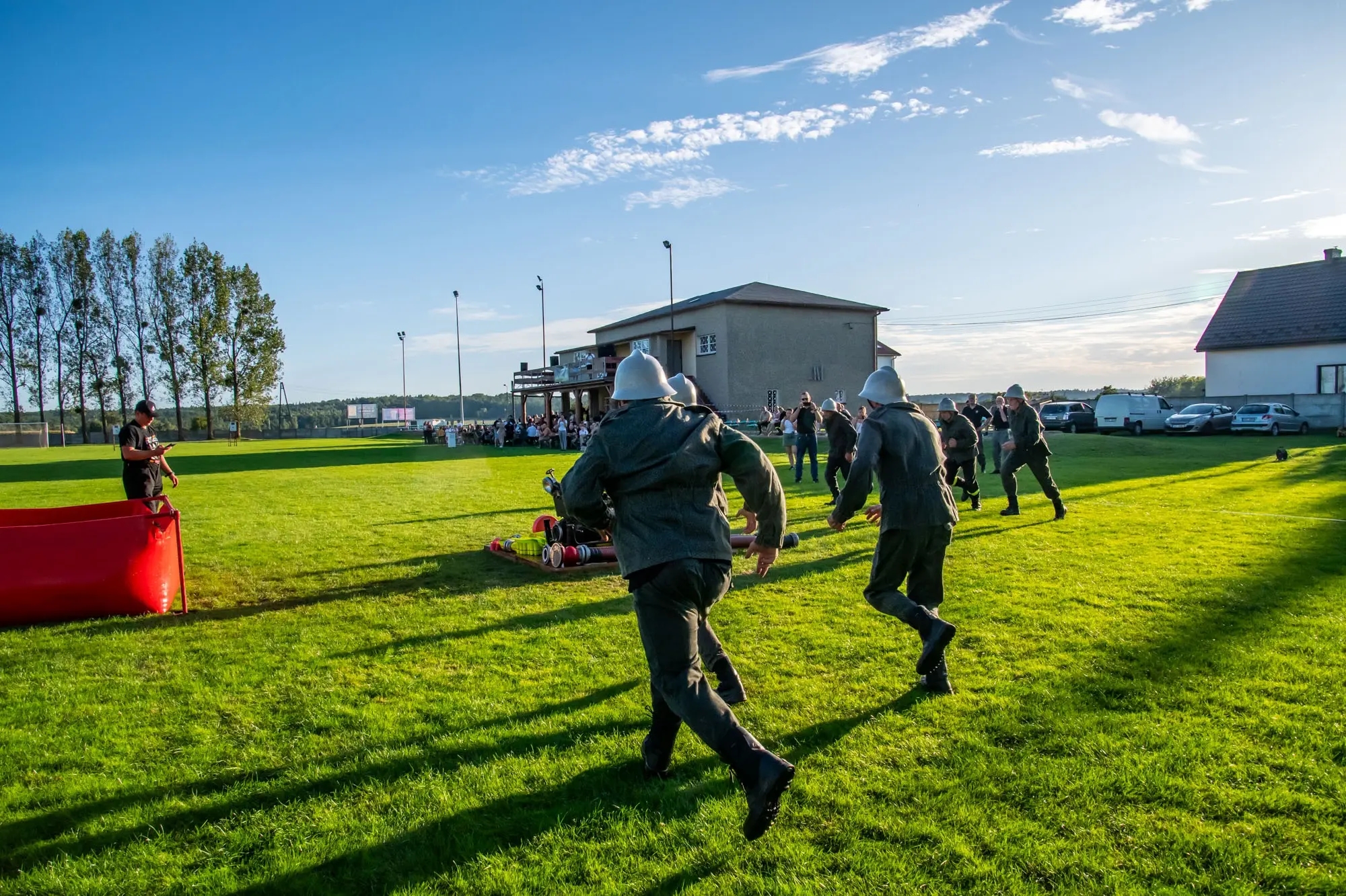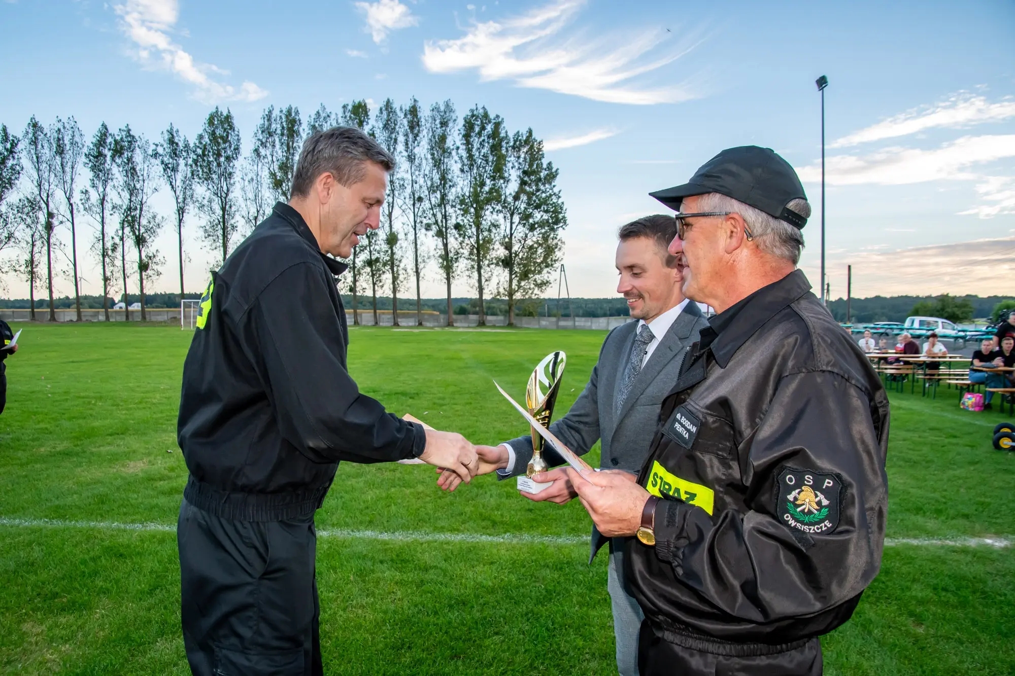 Powrót do listy wiadomości Opublikowano: 22.09.2025 Zawody Oldboyów OSP w Owsiszczach 20 września na boisku w Owsiszczach odbyły się zawody oldboyów Ochotniczych Straży Pożarnych, integrujące środowisko druhów-seniorów z gminy Krzyżanowice oraz czeskiego Píšťa. Do sportowej rywalizacji o puchar Prezesa OSP w Owsiszczach przystąpiło osiem siedmioosobowych drużyn. Uwagę zwracał imponujący średni wiek zespołów – 376 lat! Ćwiczenie bojowe polegało na sprawnym pokonaniu dystansu, zbudowaniu linii ssawnej i głównej, przygotowaniu linii gaśniczych, uruchomieniu motopompy oraz skutecznym ugaszeniu celu wodą. Uroczystego otwarcia zawodów dokonali prezes OSP Owsiszcze Bogdan Pientka, prezes zarządu gminnego OSP Walter Bożek, komendant gminny Krystian Jobczyk oraz inspektor do spraw obronnych, obrony cywilnej i sytuacji kryzysowych Urzędu Gminy Krzyżanowice, Martin Wojtek, reprezentujący wójta Grzegorza Utrackiego. Najstarszym zawodnikiem wydarzenia był druh Ludwik Mira z OSP Rudyszwałd (77 lat). Najstarsza wiekowo drużyna – również z Rudyszwałdu – osiągnęła sumaryczny wiek 430 lat. W rywalizacji najlepsza okazała się drużyna OSP Roszków, która uzyskała czas 31,94 sekundy (łączny wiek zawodników: 393 lata, najstarszy – 71 lat). Drugie miejsce zajął zespół z OSP Bolesław z wynikiem 33,19 sekundy (389 lat, najstarszy – 66 lat), a trzecie OSP Krzyżanowice (33,88 sekundy; 316 lat). Pełna klasyfikacja zawodów: OSP Roszków – 31,94 s (393 lata) OSP Bolesław – 33,19 s (389 lat) OSP Krzyżanowice – 33,88 s (316 lat) OSP Owsiszcze – 34,34 s OSP Zabełków – 38,39 s OSP Nowa Wioska – 38,42 s OSP Rudyszwałd – 41,05 s (najstarsza drużyna 430 lat) SDH Píšť – 42,78 s Zawody stanowiły nie tylko sportową rywalizację, ale były też okazją do spotkań, rozmów i wymiany doświadczeń. Dla wielu uczestników największą wartość miała możliwość ponownej integracji oraz podtrzymania strażackiej tradycji i przyjacielskich relacji. Galeria zdjęć (109) Zdjęcie 1 z 109