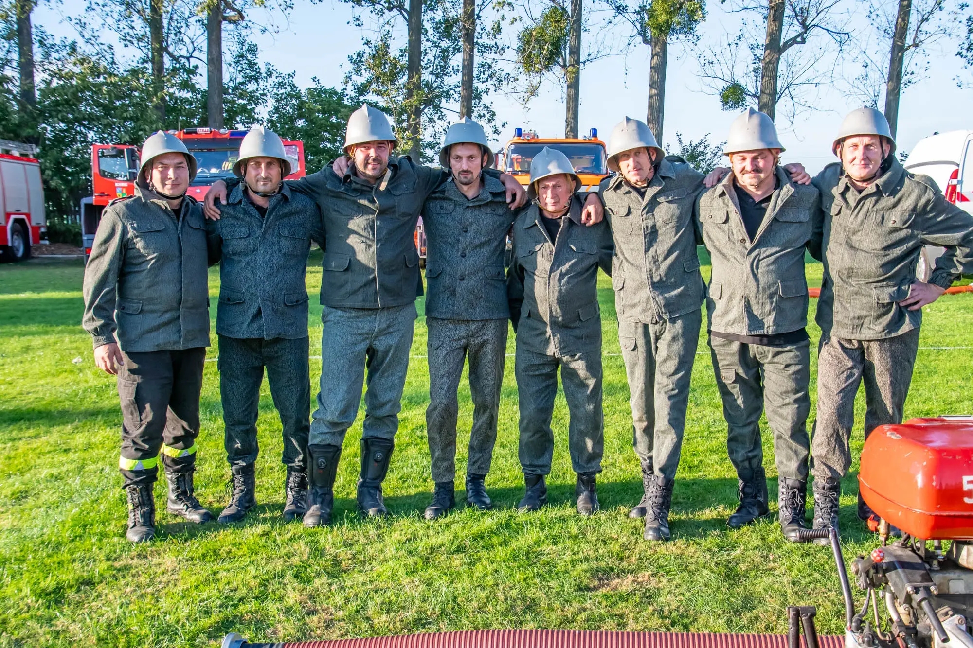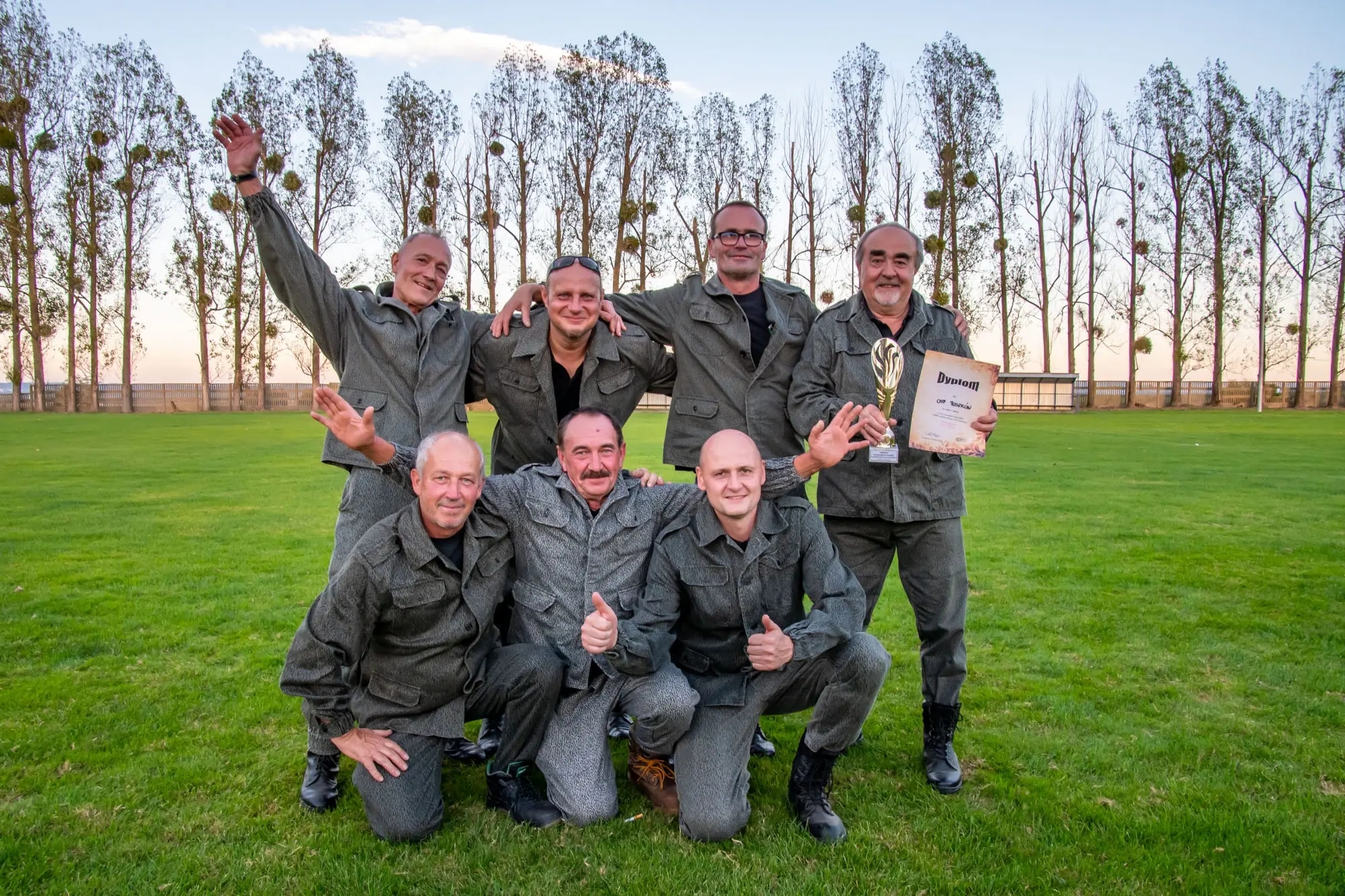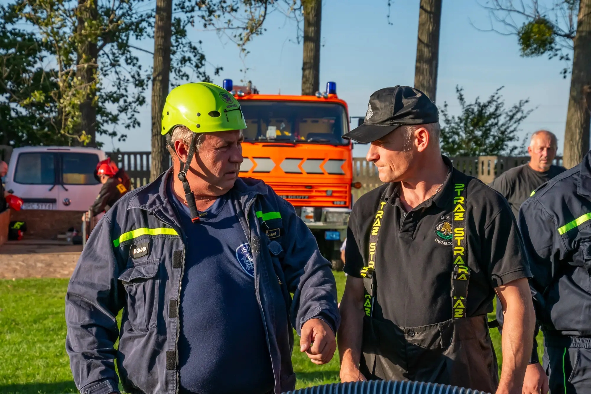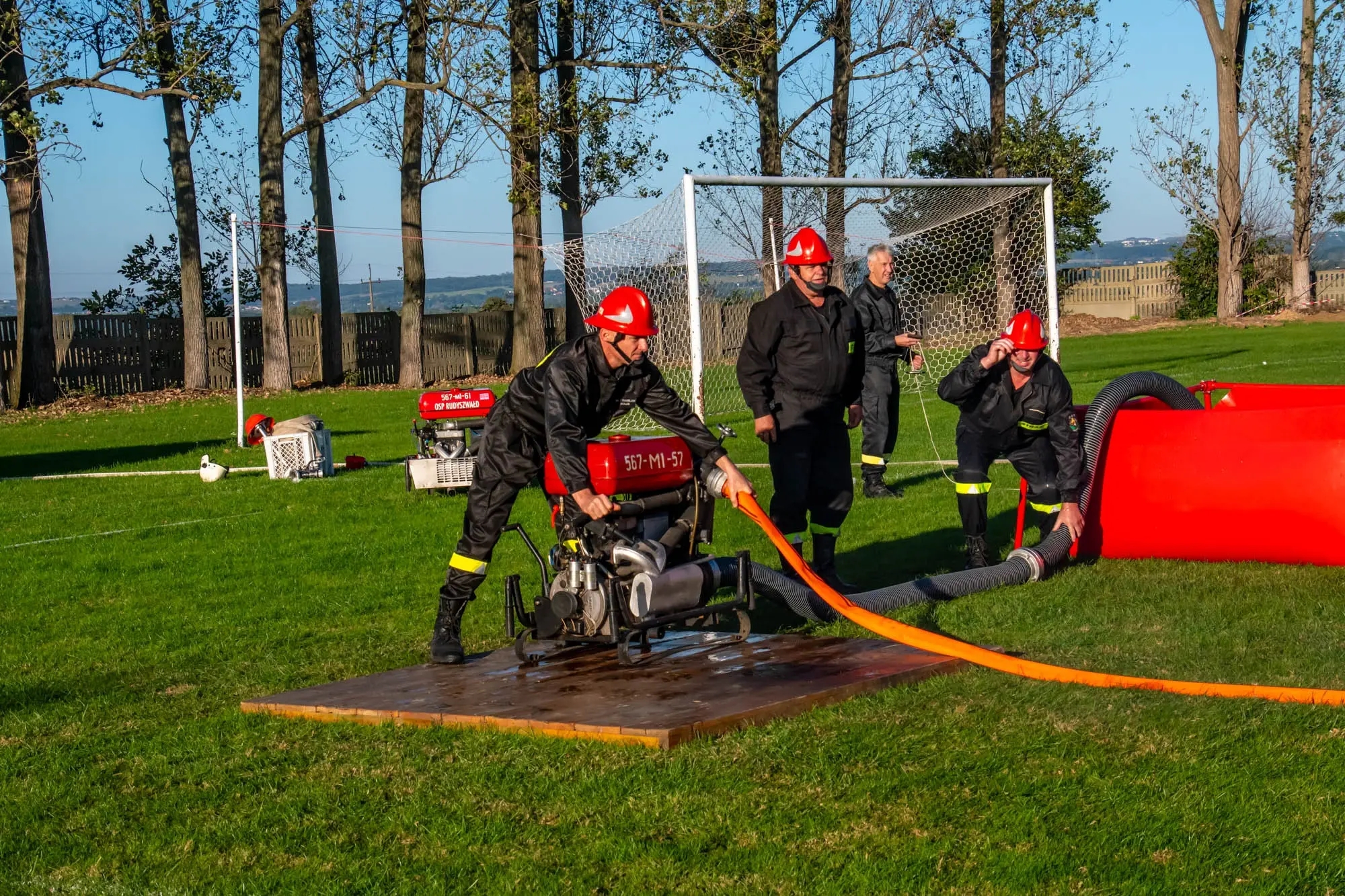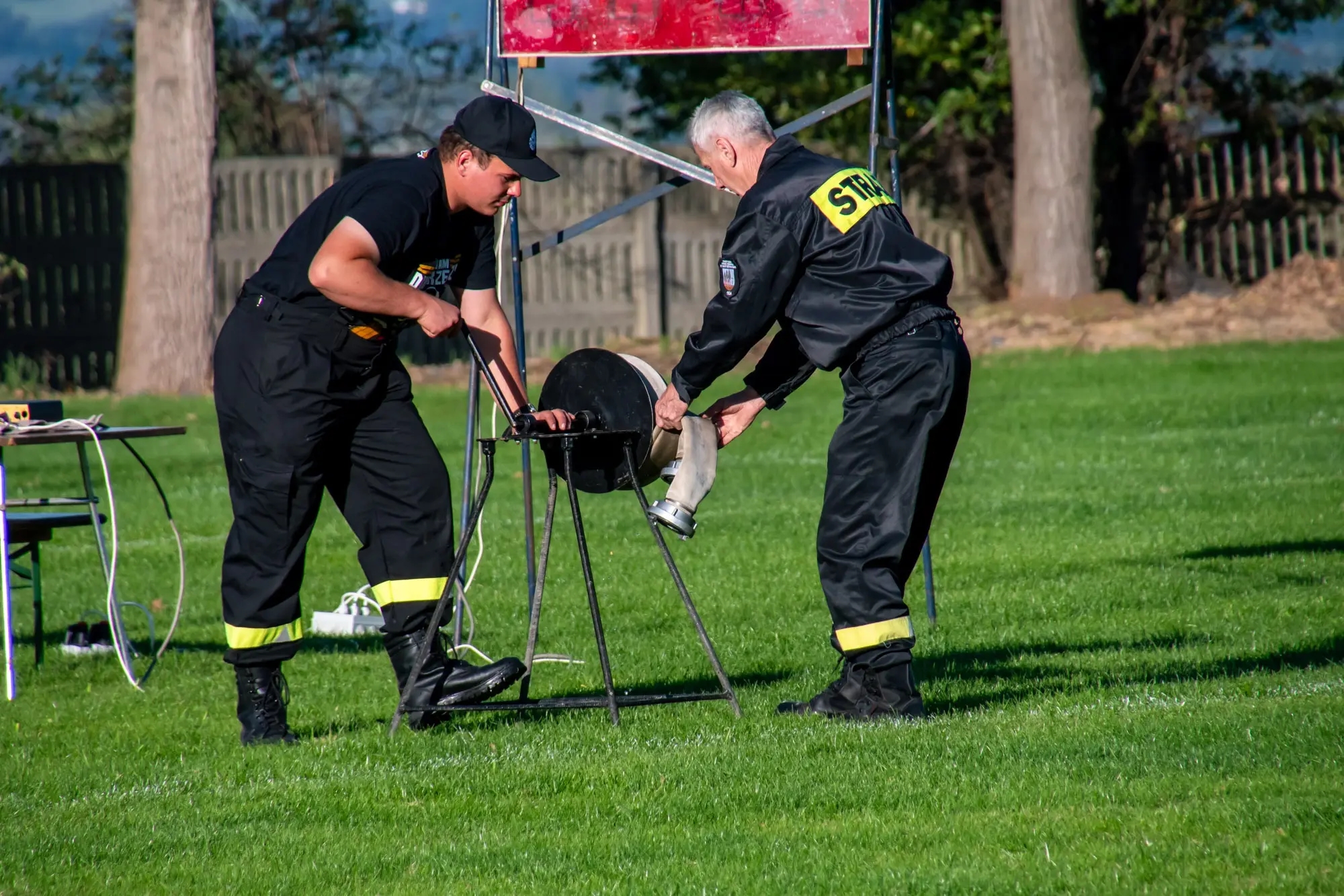 Powrót do listy wiadomości Opublikowano: 22.09.2025 Zawody Oldboyów OSP w Owsiszczach 20 września na boisku w Owsiszczach odbyły się zawody oldboyów Ochotniczych Straży Pożarnych, integrujące środowisko druhów-seniorów z gminy Krzyżanowice oraz czeskiego Píšťa. Do sportowej rywalizacji o puchar Prezesa OSP w Owsiszczach przystąpiło osiem siedmioosobowych drużyn. Uwagę zwracał imponujący średni wiek zespołów – 376 lat! Ćwiczenie bojowe polegało na sprawnym pokonaniu dystansu, zbudowaniu linii ssawnej i głównej, przygotowaniu linii gaśniczych, uruchomieniu motopompy oraz skutecznym ugaszeniu celu wodą. Uroczystego otwarcia zawodów dokonali prezes OSP Owsiszcze Bogdan Pientka, prezes zarządu gminnego OSP Walter Bożek, komendant gminny Krystian Jobczyk oraz inspektor do spraw obronnych, obrony cywilnej i sytuacji kryzysowych Urzędu Gminy Krzyżanowice, Martin Wojtek, reprezentujący wójta Grzegorza Utrackiego. Najstarszym zawodnikiem wydarzenia był druh Ludwik Mira z OSP Rudyszwałd (77 lat). Najstarsza wiekowo drużyna – również z Rudyszwałdu – osiągnęła sumaryczny wiek 430 lat. W rywalizacji najlepsza okazała się drużyna OSP Roszków, która uzyskała czas 31,94 sekundy (łączny wiek zawodników: 393 lata, najstarszy – 71 lat). Drugie miejsce zajął zespół z OSP Bolesław z wynikiem 33,19 sekundy (389 lat, najstarszy – 66 lat), a trzecie OSP Krzyżanowice (33,88 sekundy; 316 lat). Pełna klasyfikacja zawodów: OSP Roszków – 31,94 s (393 lata) OSP Bolesław – 33,19 s (389 lat) OSP Krzyżanowice – 33,88 s (316 lat) OSP Owsiszcze – 34,34 s OSP Zabełków – 38,39 s OSP Nowa Wioska – 38,42 s OSP Rudyszwałd – 41,05 s (najstarsza drużyna 430 lat) SDH Píšť – 42,78 s Zawody stanowiły nie tylko sportową rywalizację, ale były też okazją do spotkań, rozmów i wymiany doświadczeń. Dla wielu uczestników największą wartość miała możliwość ponownej integracji oraz podtrzymania strażackiej tradycji i przyjacielskich relacji. Galeria zdjęć (109) Zdjęcie 1 z 109